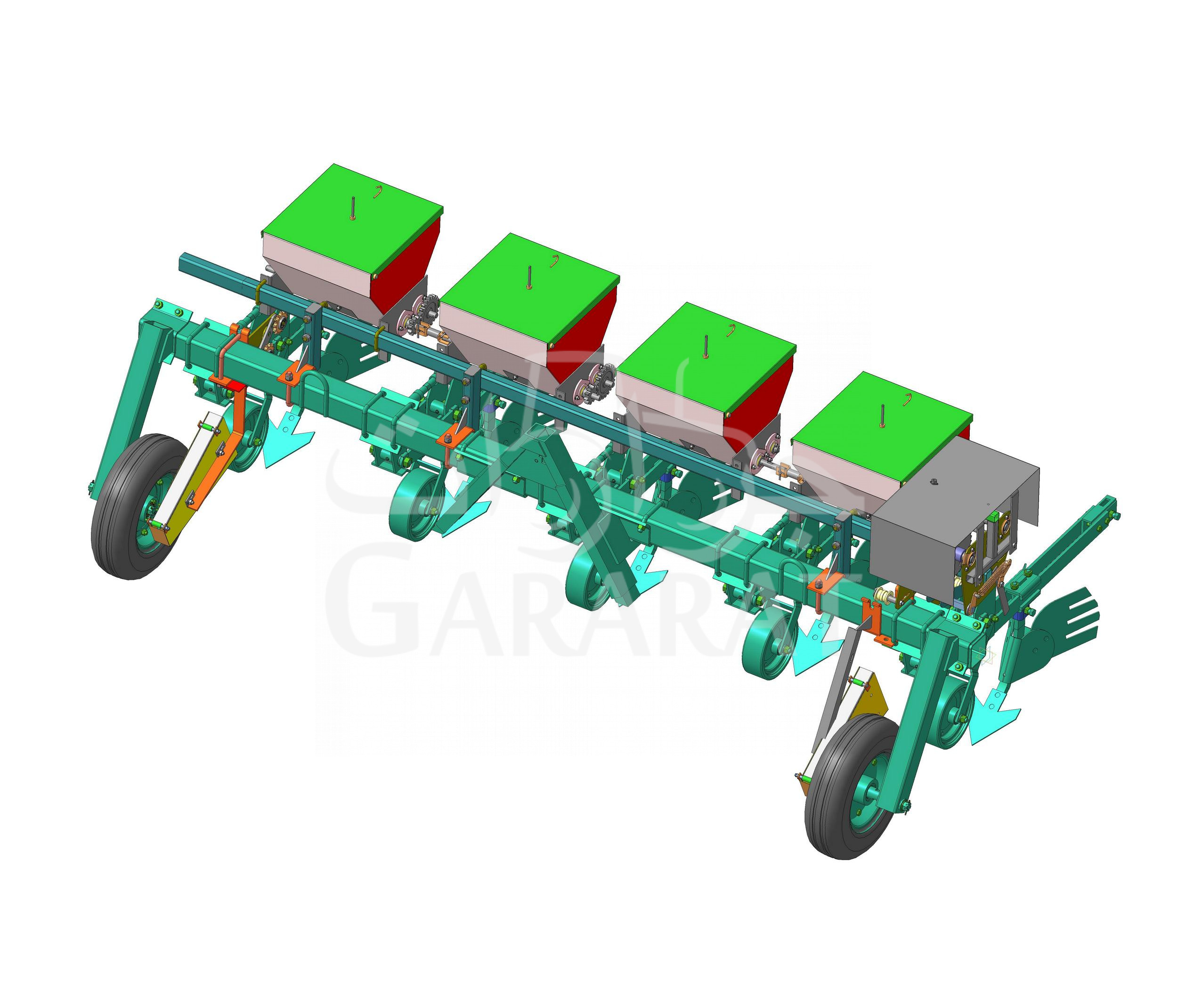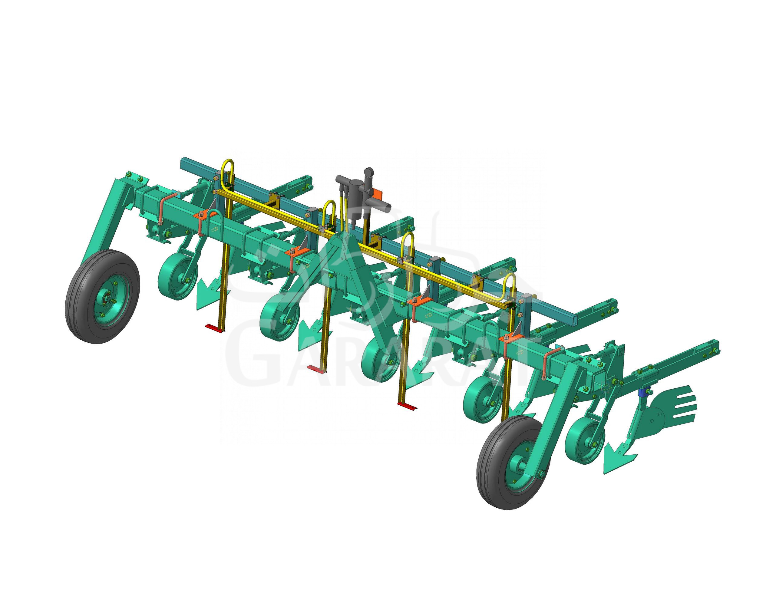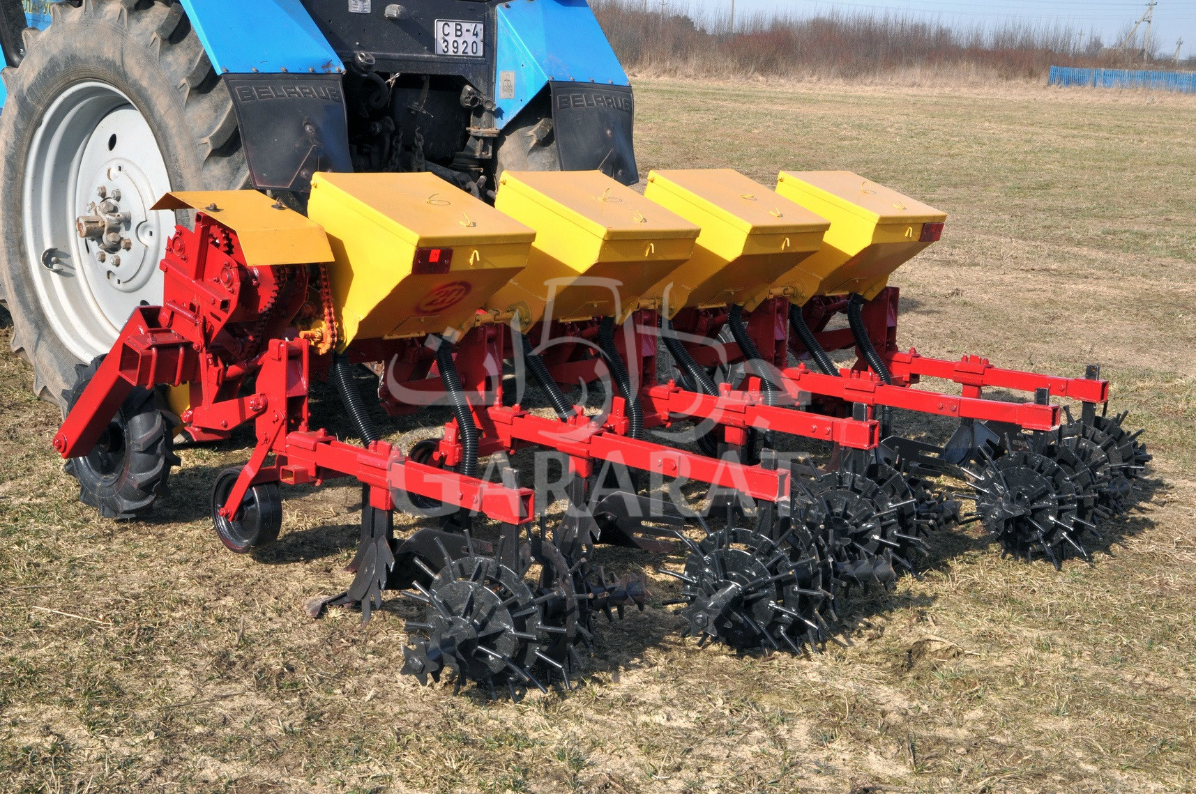 Cultivator-hiller GARARAT CHM - 2.8 Designed for cutting ridges, pre-emergence and post-emergence treatment of row spacing of 4-row potato plantings with simultaneous harrowing and hilling, harrowing on emergence, hilling or cultivation, feeding plants with bulk mineral fertilizers.
