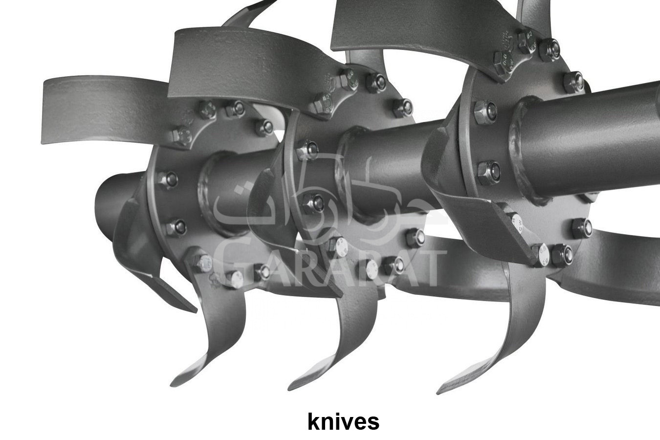 Discs with the knives are mounted on the rotor shaft with interspace of 225 mm.