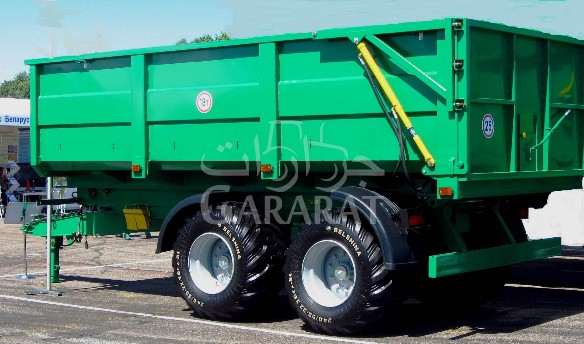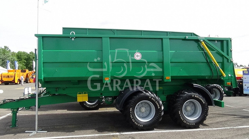 Dumper semi-trailer GARARAT DST-18 is designed for transportation of various agricultural goods, grain, root crops, organic fertilizers with back dumping. The back gate opens automatically when the body rolls over. The semitrailer has a balancing trolley with a rigid or spring suspension with the tires 20 / 60-22.5 or 24 / 50-22.5, which increases ride smoothness and is equipped with a pneumatic brake system.