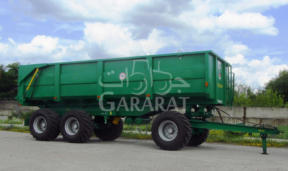 Dumper semi-trailer GARARAT DST-24 is designed for transportation of various agricultural goods, grain, root crops, organic fertilizers with back dumping. The back gate opens automatically when the body rolls over. The semitrailer has a balancing trolley with a rigid or spring suspension with the tires 20 / 60-22.5 or 24 / 50-22.5, which increases ride smoothness and is equipped with a pneumatic brake system.